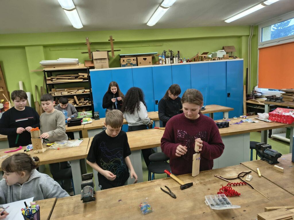 Žiaci 6.B sa pustili do tvorivej práce a vyrábali robotov z rôznych materiálov. Pri práci využívali drevo, kov aj plast,