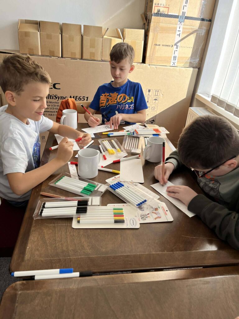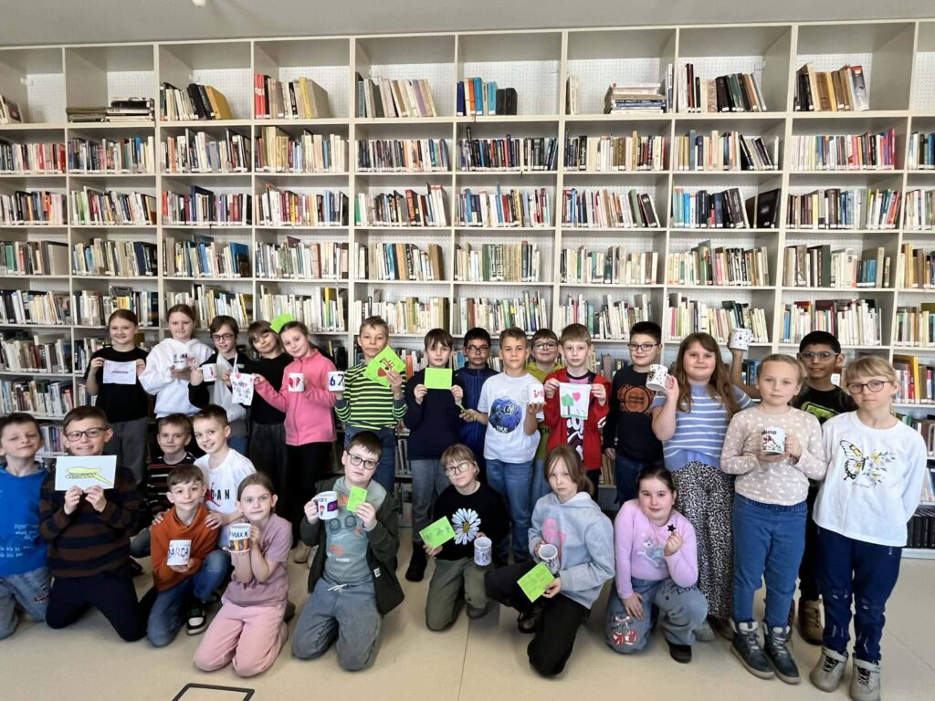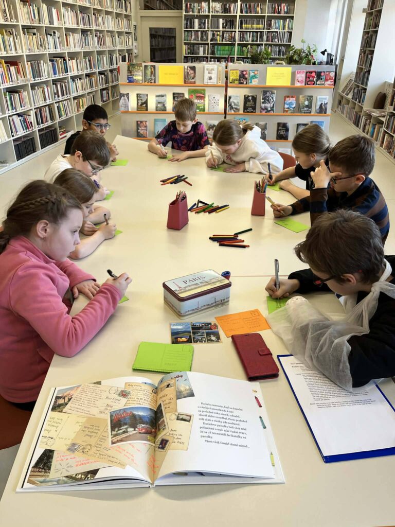 Najväčšiu radosť však deťom priniesla vlastná tvorba. Každý si mohol pripraviť svoj návrh na potlač hrnčeka, handričky na okuliare či magnetky. Deti pracovali s veľkým nadšením a fantáziou– vznikli veselé obrázky, nápisy aj originálne nápady. Okrem toho si žiaci vyrobili aj vlastné pohľadnice, ktoré si odniesli domov ako milú spomienku na tento deň. Návšteva knižnice bola pre žiakov nielen zábavná, ale aj poučná. Spojenie kníh, kreativity a moderných technológií ukázalo deťom, že knižnica je miestom plným nových možností, objavovania a radosti z tvorenia.