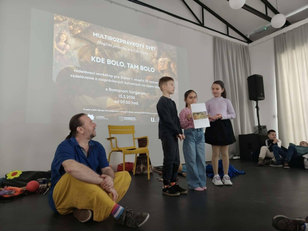 Obidve triedy sa premenili na živé javisko.Pán Roman Sorger – scenárista a dramaturg z divadelného súboru Haliganda z Košíc – žiakov vtiahol do deja tak, aby o rozprávkach len nepočúvali, ale ich doslova dýchali a žili.Rýchlo sa premenili z divákov na spolutvorcov.
