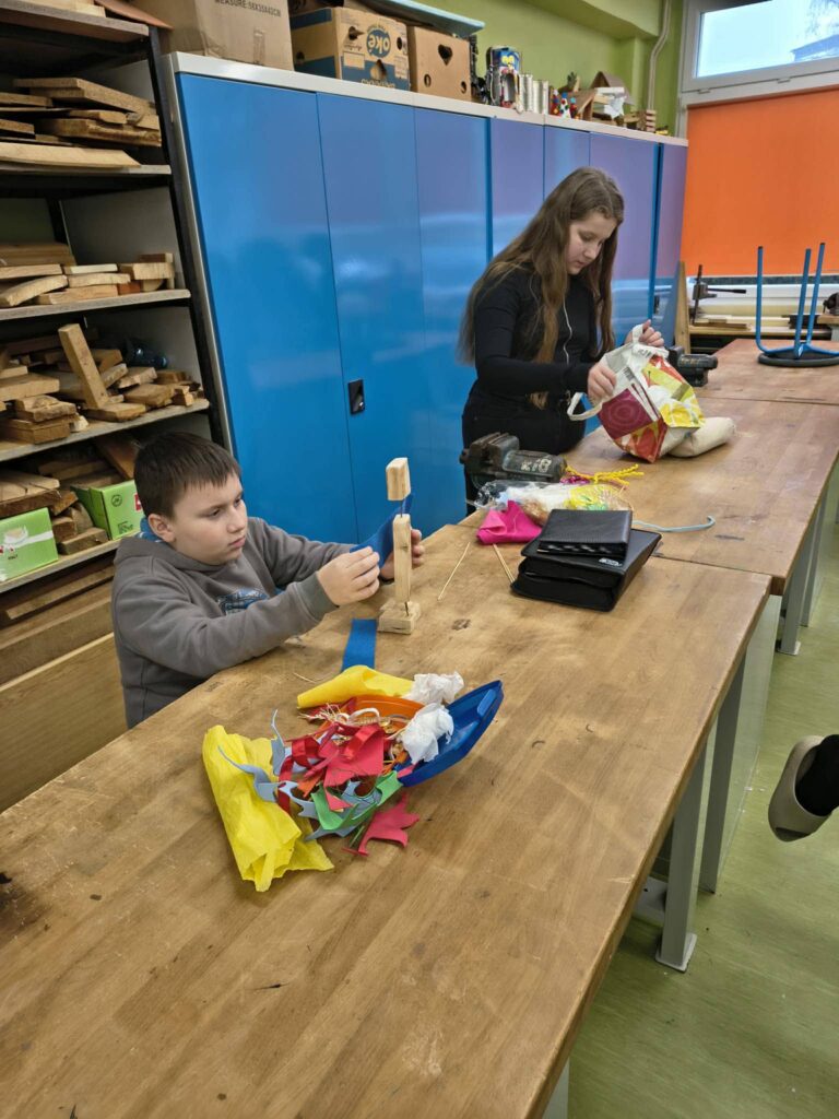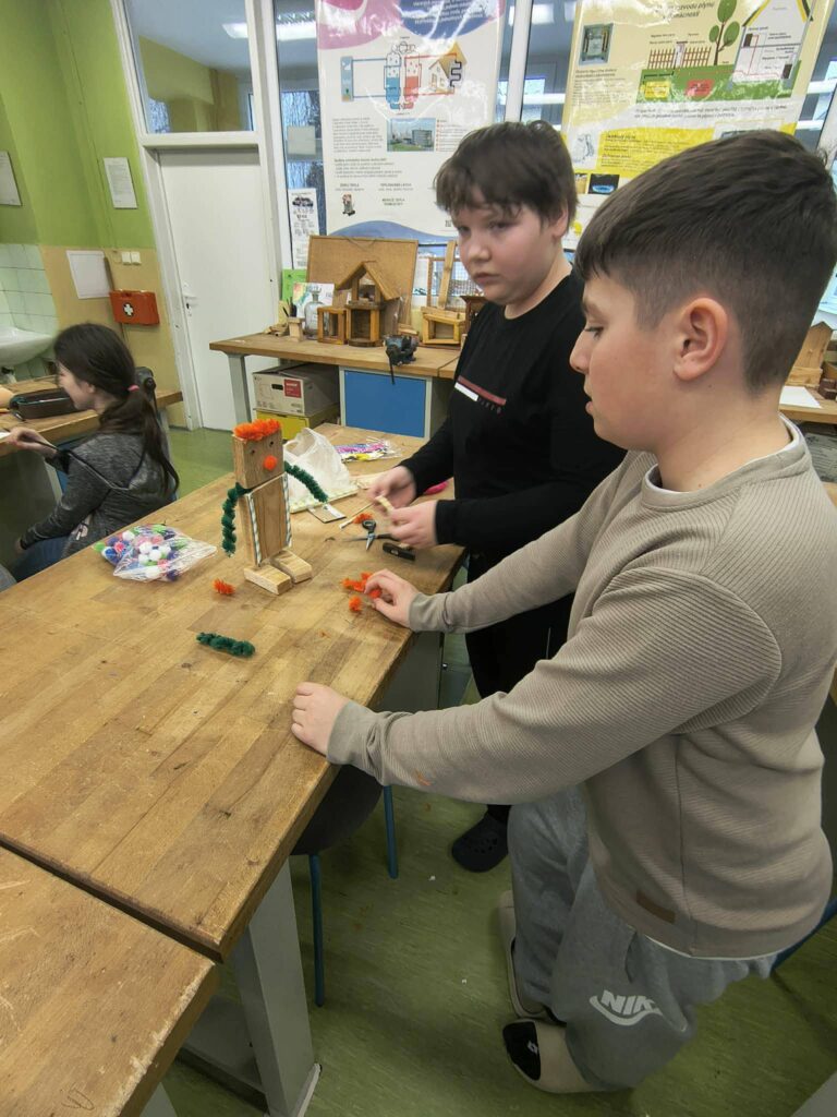 Žiaci 6.B sa pustili do tvorivej práce a vyrábali robotov z rôznych materiálov. Pri práci využívali drevo, kov aj plast, čím si rozvíjali nielen technické zručnosti, ale aj fantáziu, presnosť a schopnosť spolupracovať v tíme. Každý robot bol originál a dôkazom šikovnosti našich žiakov. Žiaci 7.A a 7.B strávili hodinu techniky v školskej kuchynke, kde si prakticky vyskúšali prípravu jednoduchých jedál: