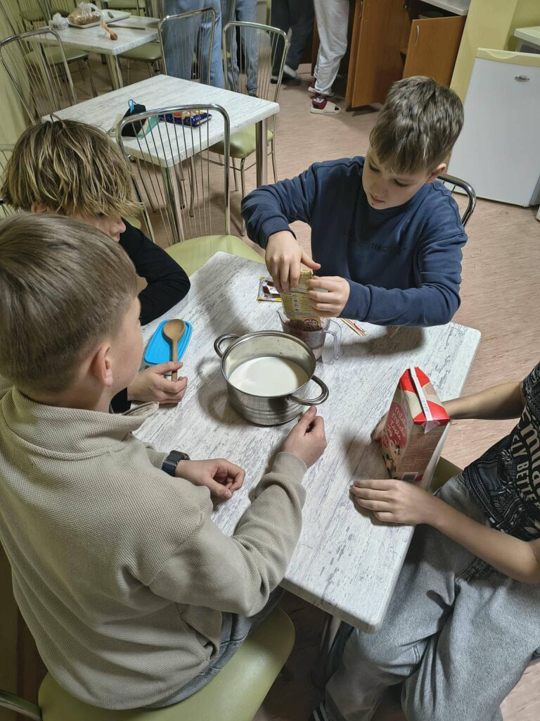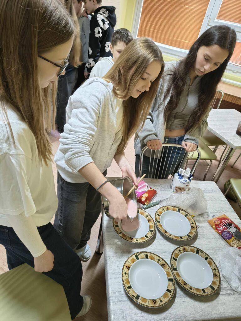 jedna skupina pripravovala puding,