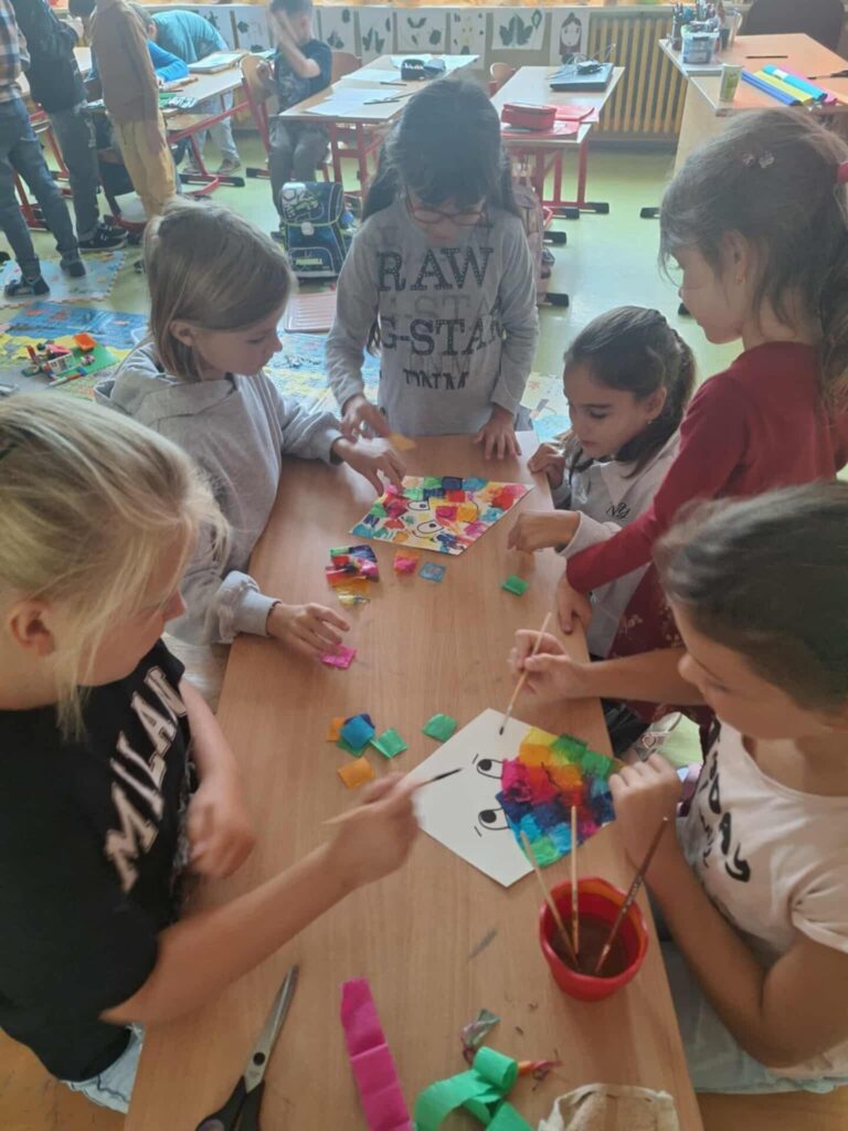 Jesenné slnečné popoludnie v ŠKD deti vyrábali pestrofarebných šarkanov s dlhými chvostami.Pri tvorení využili svoju kreativitu a fantáziu, a preto bol každý iný.Originálne šarkany nám skrášľujú chodby našej školy a pripomínajú zážitky z tvorenia. ZŠ